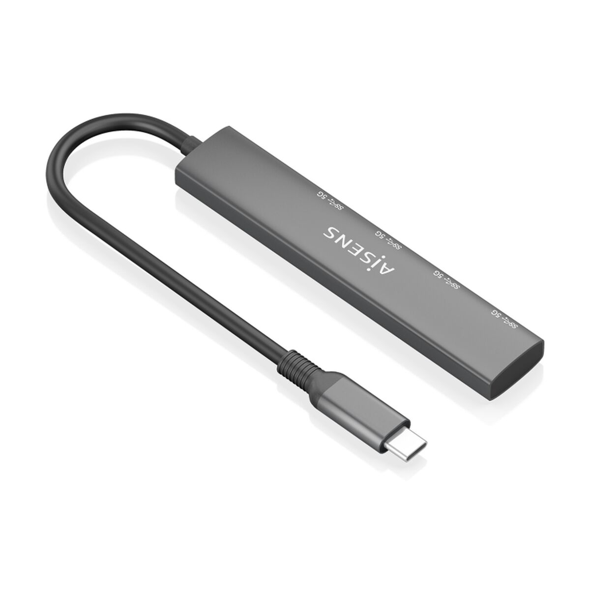 The AISENS USB adapter is a practical and efficient solution to expand the connectivity of devices with USB ports, ideal for those who need to connect multiple peripherals to modern computers or laptops. This multi-device hub features an elegant grey finish and is made of durable plastic, offering lightness and durability for daily use. It has a male USB-C interface for direct connection to USB-C port devices and provides expansion to four USB A 3.2 Gen 1 (3.1 Gen 1) ports, compatible with the USB 3.2 standard, ensuring fast and stable data transfer with theoretical speeds up to 5 Gbps. This feature allows simultaneous connection of devices such as external hard drives, flash drives, keyboards, mice, or printers, optimizing space and workspace management. Additionally, its design is plug and play, meaning no driver installation is required, allowing immediate and easy use on compatible operating systems. The integrated cable is approximately 15 cm long, providing flexibility to position it without cables interfering with the workspace. The wired connection guarantees stability and universal compatibility across multiple environments, facilitating port expansion without technical complications. Overall, this AISENS USB hub is a functional, versatile, and convenient accessory to expand connectivity in work or home spaces that require connecting several USB devices simultaneously without losing speed or transfer quality. An essential accessory for those looking to maximize the use of their USB-C ports with the guarantee of a recognized brand in affordable tech solutions.